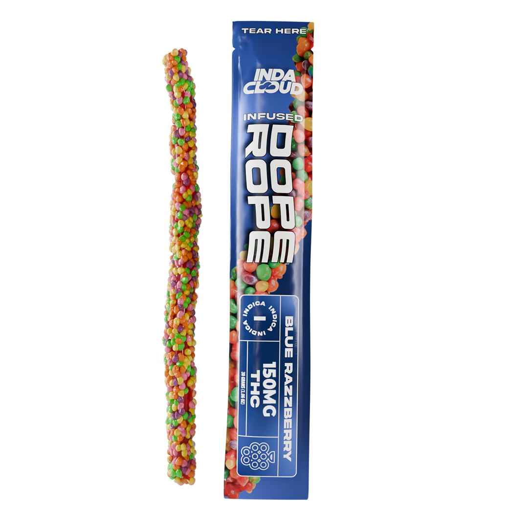 Introducing the Dope Rope, a blast from your past! This candy pebble covered treat boasts 150mg of Delta 9 and Delta 8 THC. Crafted in three flavors, Fruit Punch, Strawberry Colada, and Blue razz, it’s the perfect edible to get you absolutely baked. Be sure to dose accordingly, 150 mg makes the Dope Rope our strongest edible yet so we recommend you start with pieces no larger than ⅛