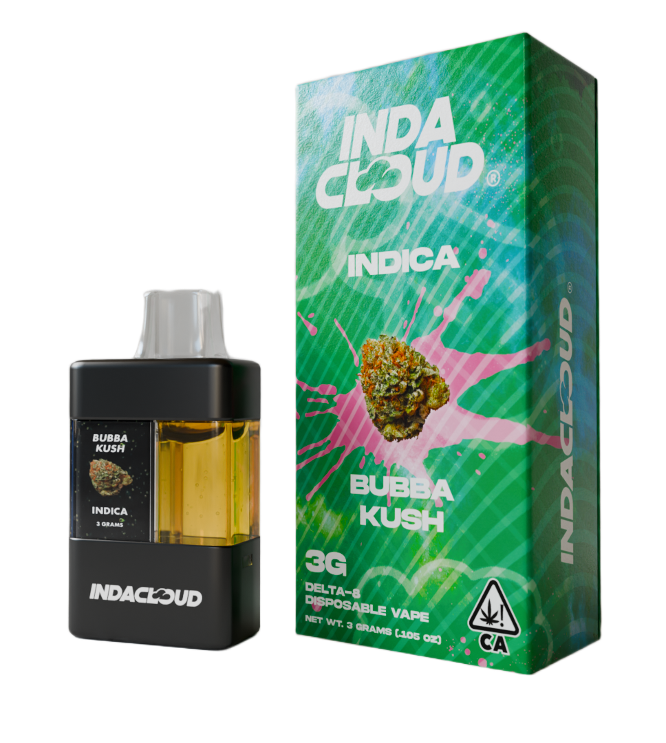 Cozy Indica vibes with earthy chocolate-coffee tones, Bubba Kush Delta 8 delivers deeply relaxing calm and restful comfort in a smooth, 3‑gram disposable hit.