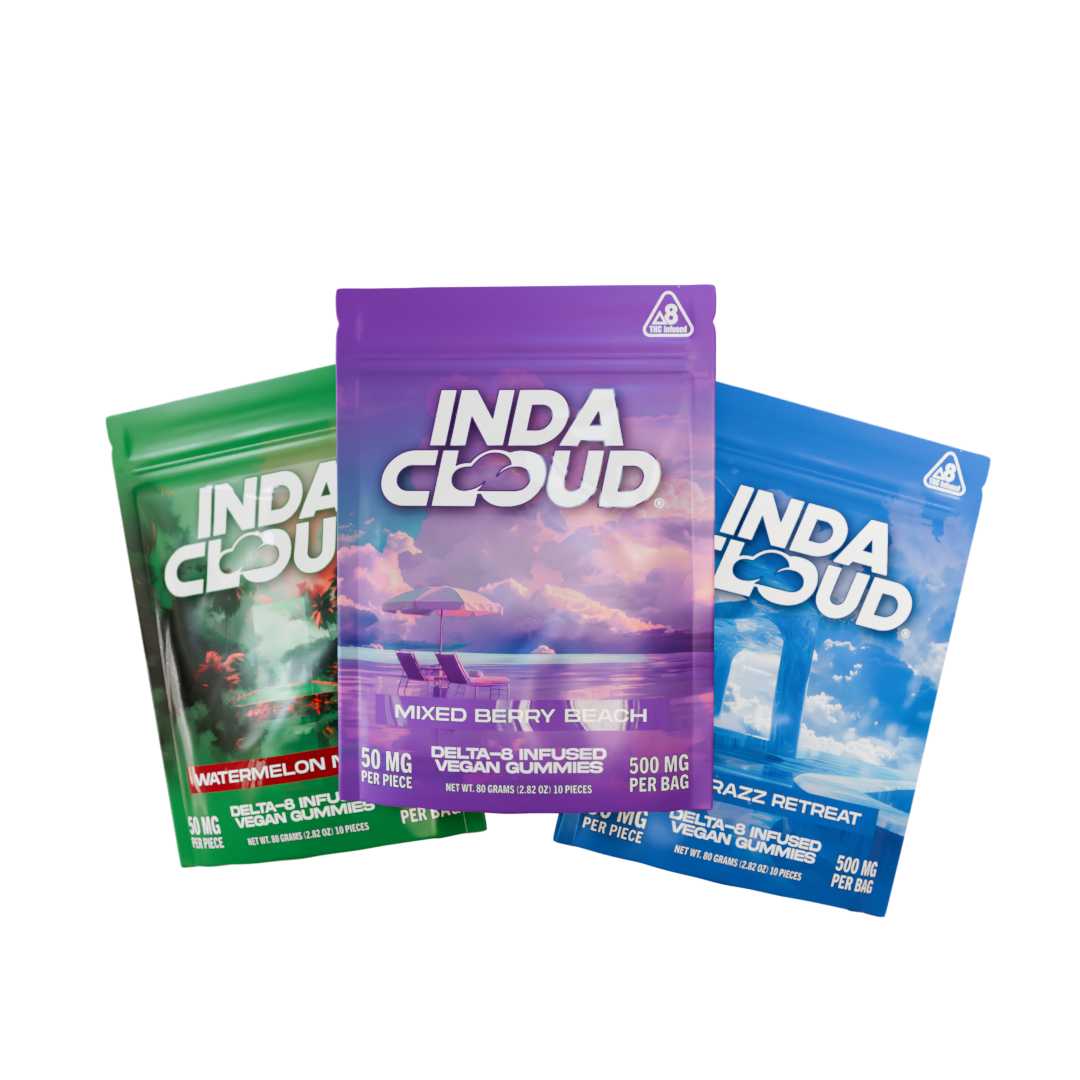 The Delta 8 Vegan Gummies Bundle from Indacloud is designed to offer both variety and value. Each bundle contains a total of 30 gummies, split across three packs. Each pack, offering a unique flavor - Berry High, Blue Razz, and Watermelon Rush, contains 10 gummies. This assortment allows users to enjoy a range of delicious tastes while benefiting from the potent effects of Delta 8 THC, making it a fantastic choice for those new to Delta 8 or seasoned users looking for variety.