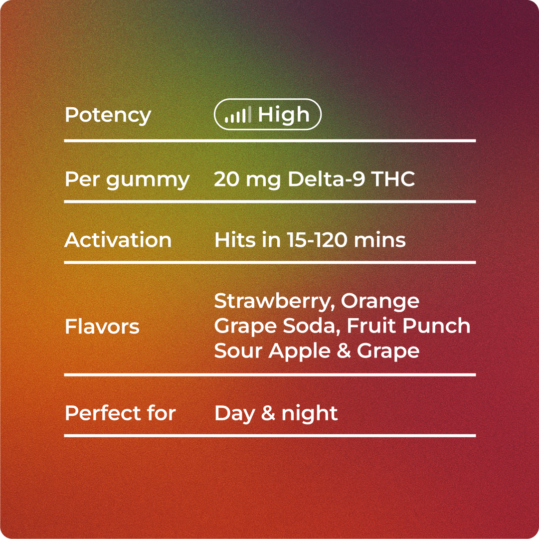 Each gummy contains a potent dose of Delta 9 THC, so it’s important to start slow, especially if you’re new to edibles. Here’s how to use this product safely: