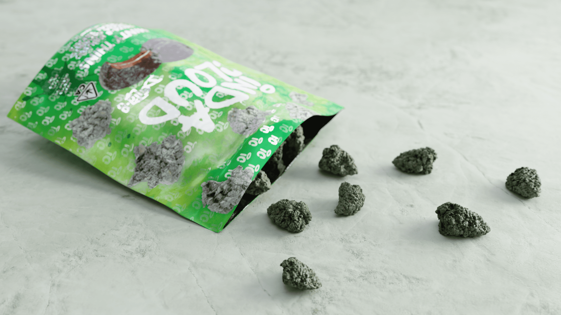 Cocoa‑covered rice‑krispie “buds” shaped like cannabis nuggets, delivering mint‑chocolate bliss with smooth, relaxing potency.