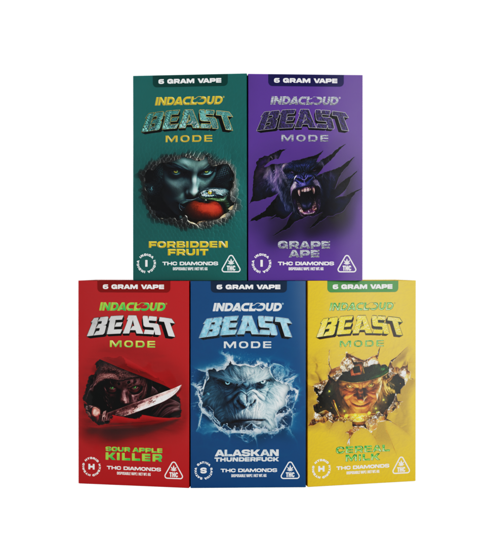 Ready to get higher than ever before? Introducing what might be the world’s largest and most powerful disposable vape. Introducing the Beast Mode Series, an extremely limited run, absolutely insane 6 gram device filled with everyones favorite THCa Diamonds. With 5 sought after strains to choose from and flavor profiles that are to die for. Coming in Alaskan Thunderf*ck (Sativa), Cereal Milk (Hybrid), Sour Apple Killer (Hybrid), Forbidden Fruit (Indica), and Grape Ape (Indica). This Vape is rechargeable, has anti clogging technology and most importantly will blow you away. No description can accurately do this justice, you just have to try it for yourself.